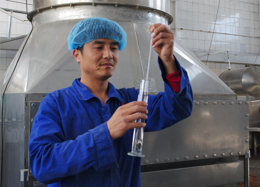 在白酒的生产过程中,原粮是基础,工艺是关键。良好的工艺操作,不仅是提高产品产量的关键,同时也是提升产品质量的保证。韩利伟平时在生产工艺的执行上从不打折扣,从润粮到原酒入库的每一个细小环节他都严抓细管,严格按照操作规程执行,特别是在装甑蒸馏等关键工序的控制以及发酵的跟踪检查等环节中,他都要做详细的记录。只要发现问题便结合化验结果和工艺记录,对数据进行对比分析,重新确认最佳的水分和入缸温度。同时根据对发酵温度曲线和对时材料的分析,及时调整保温棉被的层数,使酒醅的发酵达到“前缓、中挺、后缓落”的效果,从而保证了原酒的质量。而且他大胆采取适当拉高酒度的方法,以增大香味物质的含量,并及时清理制酒器材,降低乳酸含量,从而使得乌兰纯粮酒在保证原本口感的基础上更加柔和醇香。